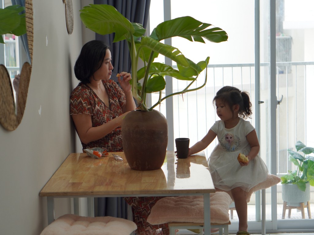 Mình lúc đó đã đặt mục tiêu phải như chị ấy khi có con. Đó là lý do mãi đến năm 33 tuổi mình mới sinh Bơ. Phần vì đã xử lý xong công việc và trách nhiệm ở vị trí làm thuê cho tập đoàn lớn. Phần vì sau mười năm đi làm mình muốn được nghỉ ngơi sau chuỗi ngày chạy số đến bạc tóc.