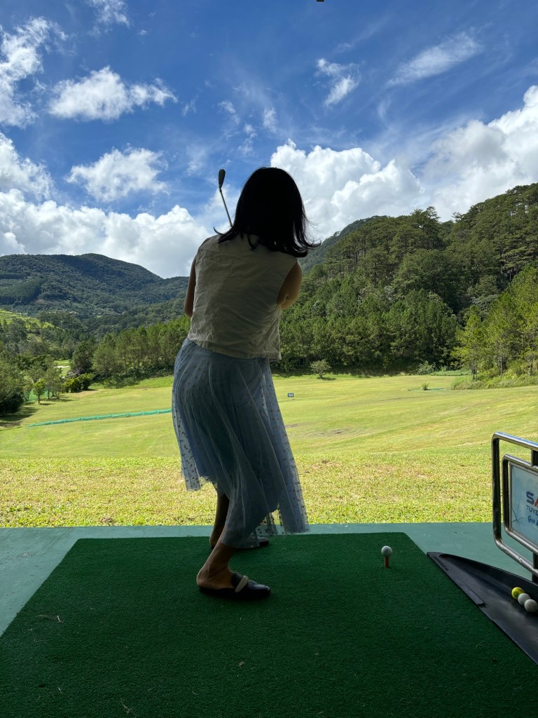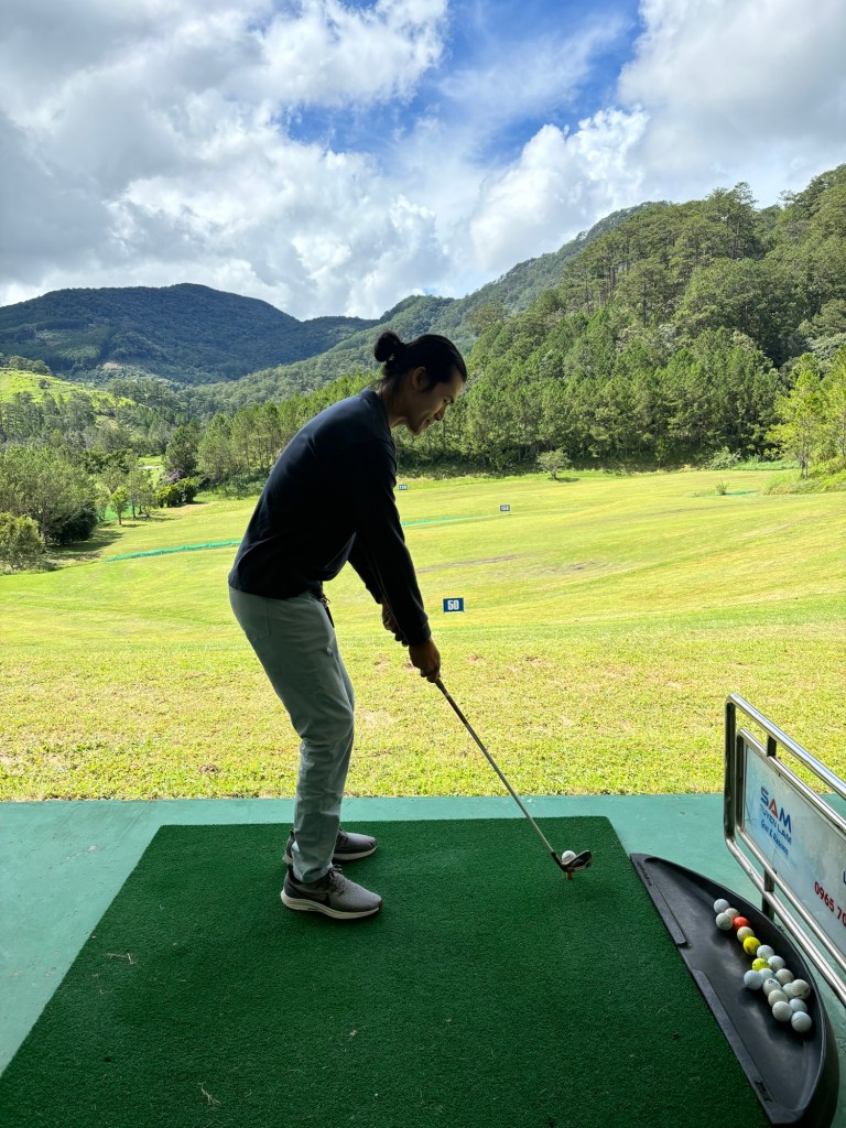 Kinh nghiệm là bạn nên chuẩn bị đồ chơi Golf trước để có hình đẹp + tự tìm hiểu về cách chơi vì chỗ golf họ sẽ thảy mình ra chỗ đánh với 20 trái banh mà không có người kèm riêng hay chỉ dẫn – Cũng hơi quê khi đi vậy.