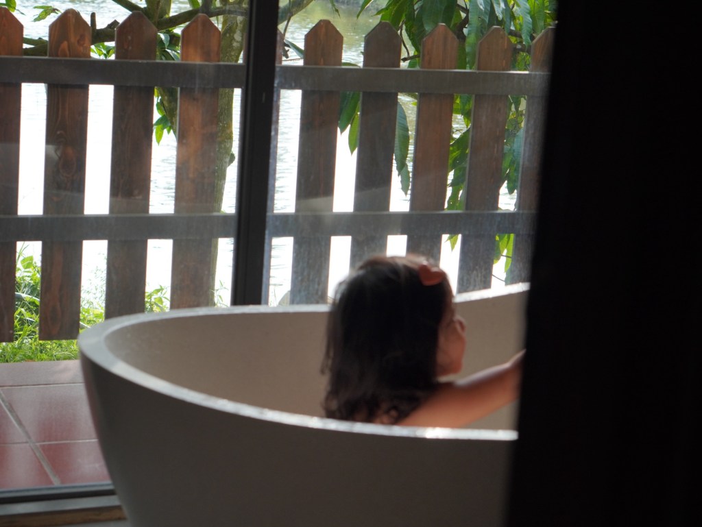 Phòng có bồn tắm lớn nhìn rất chill. Mẹ con mình thích lặn hụp trong đó cả ngày.