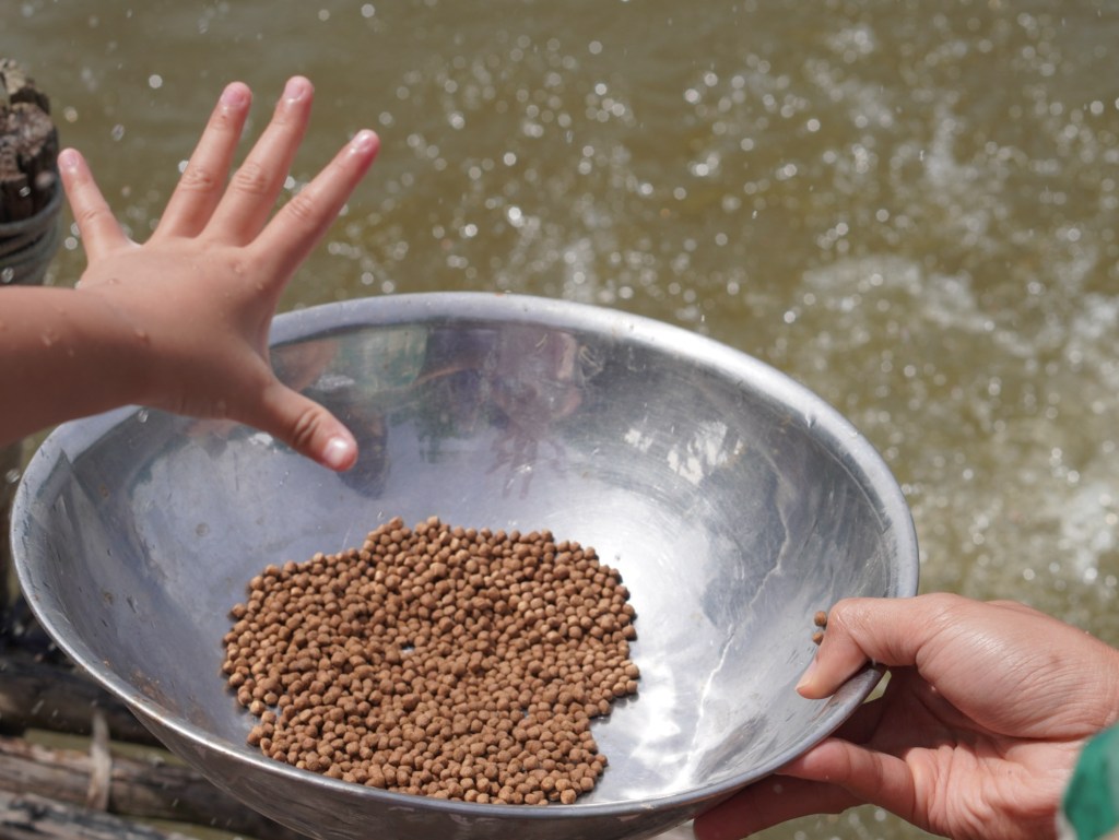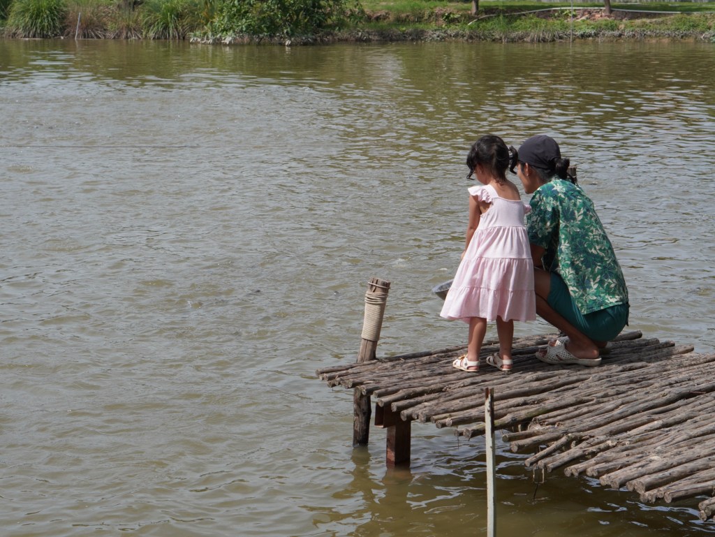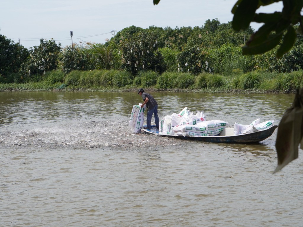 Đi dạo hoặc bơi xuồng quanh vườn Xoài và cho cá Tra bè ăn .
